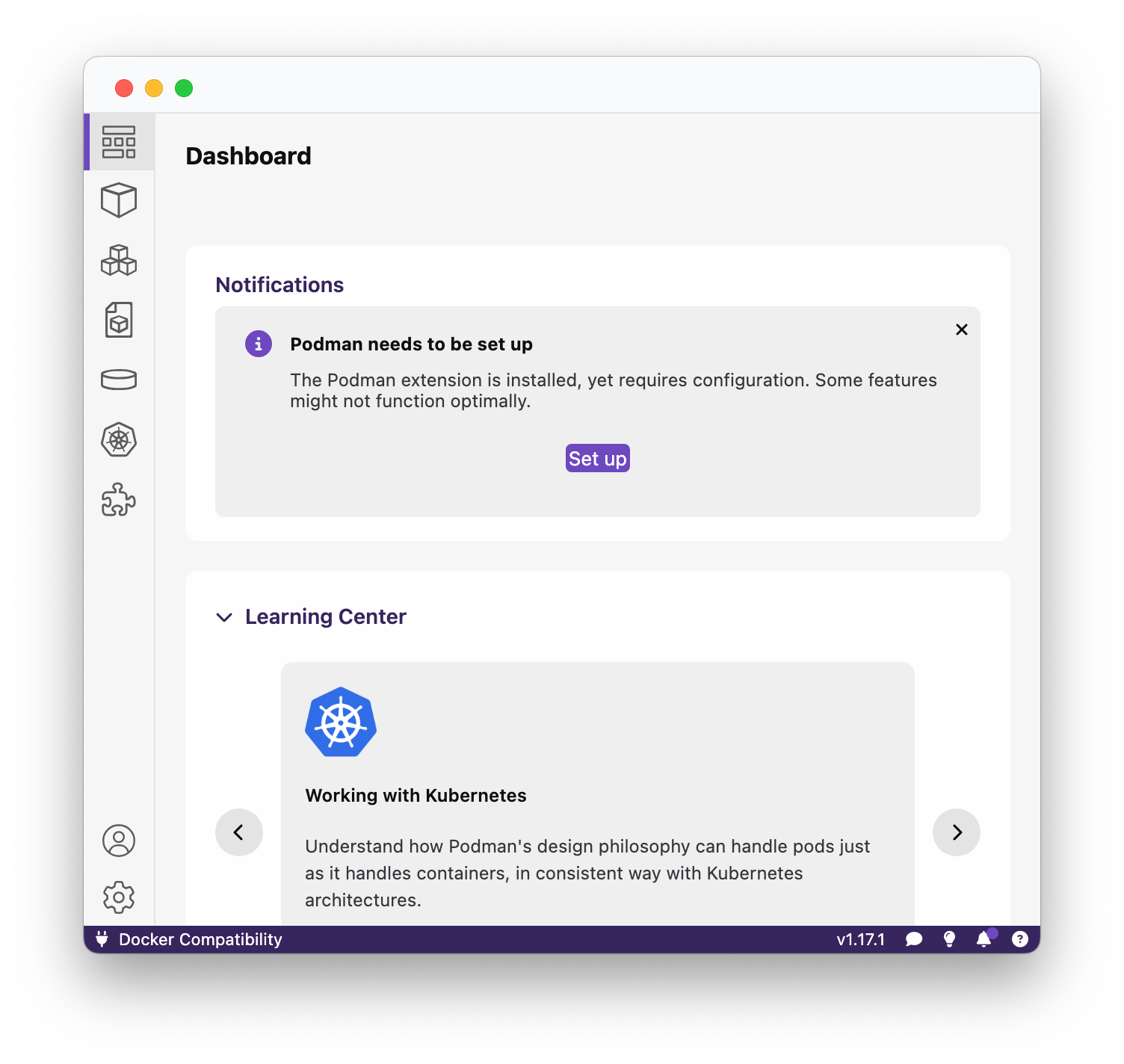 After installation, you will need to setup a podman machine. Just open Podman Desktop, and you will be prompted to do so.