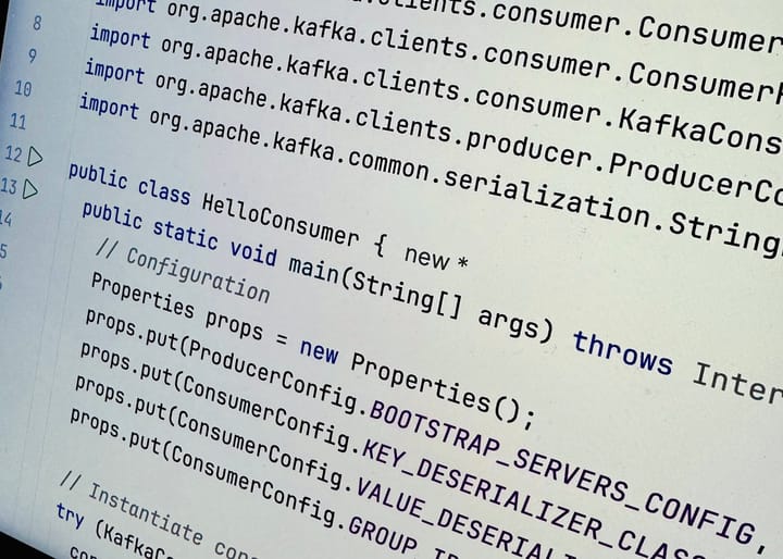 Both classes start by defining some configuration which determines the nature of their relationship to the Apache Kafka®-cluster. Using this configuration, we instantiate the KafkaProducer and KafkaConsumer client classes, which are provided by the kafka-clients dependency. Finally, the client classes perform their respective tasks vis-à-vis the "Hello, world!"-message.